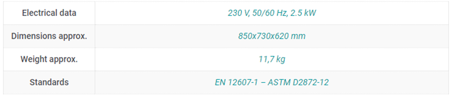 加熱柜預(yù)設(shè)為 163°C 的測(cè)試溫度。在測(cè)試期間,用戶會(huì)被告知有關(guān)光學(xué)和聲音信號(hào)的程序。測(cè)試過(guò)程是自動(dòng)的。