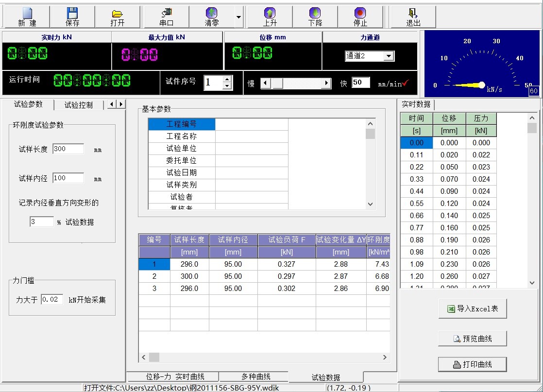 該試驗(yàn)機(jī)采用日本松下進(jìn)口交流伺服電動(dòng)機(jī)作為動(dòng)力源;采用先進(jìn)的芯片集成技術(shù),專(zhuān)業(yè)設(shè)計(jì)的PCI數(shù)據(jù)采集放大和控制系統(tǒng),試驗(yàn)力、變形的放大、A/D轉(zhuǎn)換過(guò)程實(shí)現(xiàn)了雙顯控制和顯示的全數(shù)字化調(diào)整。本機(jī)可對(duì)各種金屬、非金屬及復(fù)合材料進(jìn)行力學(xué)性能測(cè)試和分析研究, 滿足交通部《JT/T529-2016預(yù)應(yīng)力混凝土橋梁用塑料波紋管》的要求,可完成塑料波紋管的環(huán)剛度試驗(yàn)、局部橫向荷載試驗(yàn)、縱向荷載試驗(yàn)、塑料拉伸強(qiáng)度試驗(yàn),是交通部綜合甲級(jí)和橋隧專(zhuān)項(xiàng)檢測(cè)資質(zhì)必備設(shè)備。滿足《JG 225-2007預(yù)應(yīng)力混凝土金屬波紋管》的要求, 可完成金屬波紋管的徑向剛度(集中荷載和均布荷載作用下)試驗(yàn),可擴(kuò)充交通工程材料力學(xué)性能檢測(cè)功能。