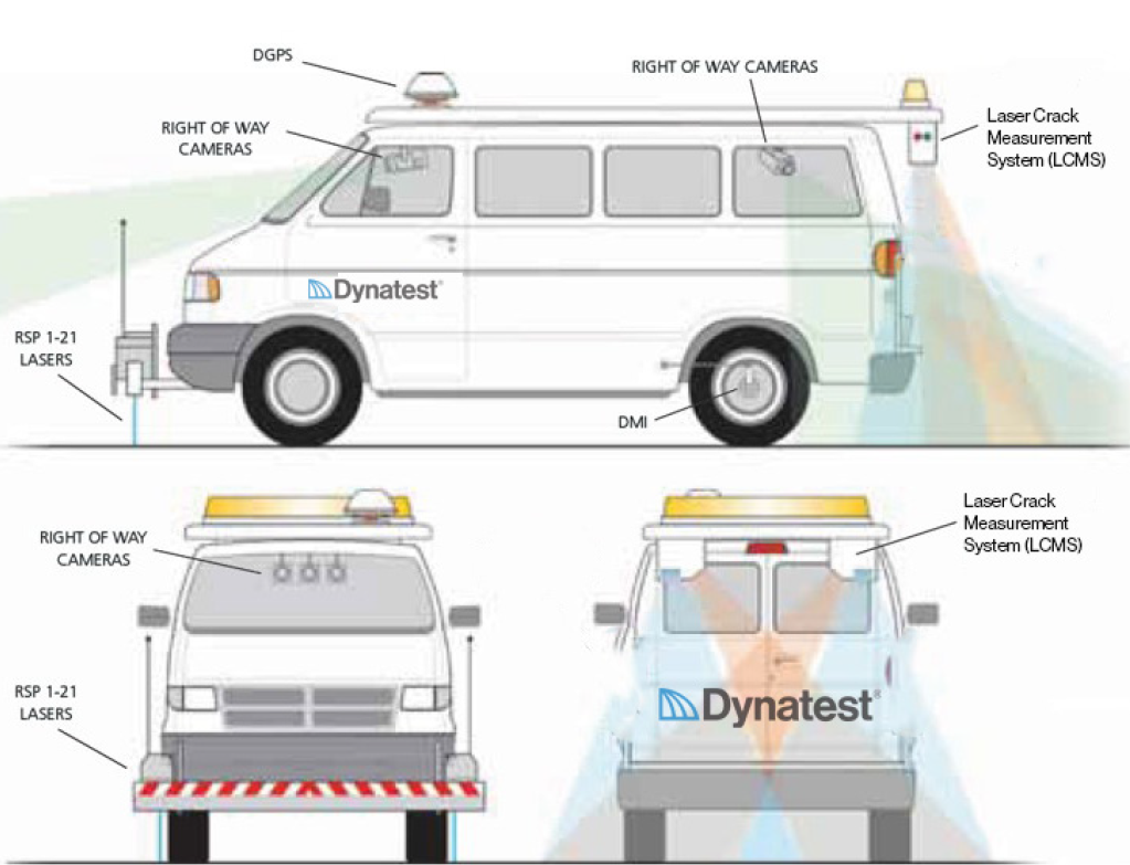 使用最少五個(gè)激光傳感器,可以計(jì)算出非常簡(jiǎn)單的車道“橫向剖面”和每個(gè)車輪路徑的簡(jiǎn)單、單獨(dú)的車轍值。通過(guò)添加另外兩個(gè)、四個(gè)、六個(gè)或更多激光器(最多總共 21 個(gè)),可以更詳細(xì)地定義橫向輪廓,因此可以更準(zhǔn)確地確定車轍。